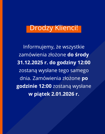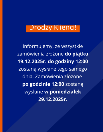 Zamówienia złożone w dni robocze do godziny 12:00 są wysyłane jeszcze tego samego dnia.