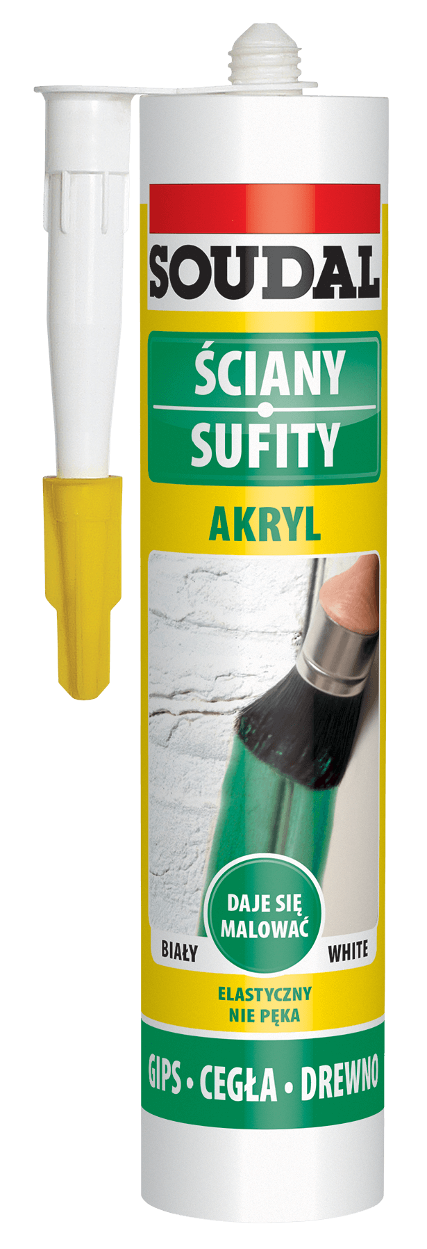 Akryl firmy Soudal nie zawiera rozpuszczalników, po utwardzeniu może być szlifowany i malowany. Przeznaczony jest do zastosowań wewnętrznych. Bardzo dobrze sprawdzi się m.in. przy wypełnianiu szczelin, rys i ubytków w betonie, murze i tynku, przy wypełnianiu spoin wokół ram drewnianych i metalowych oraz przy spoinowaniu fug o ruchomości maksymalnie do 15 %.