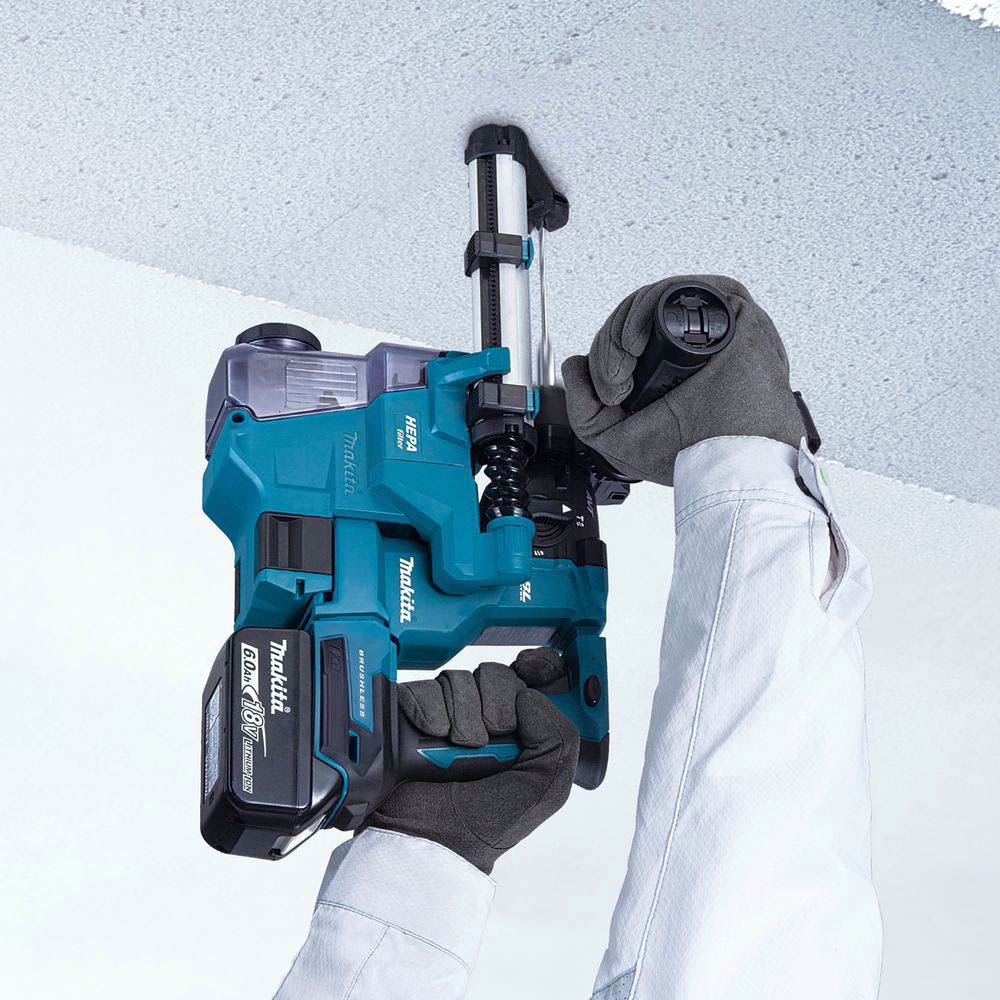 Młotowiertarka akumulatorowa Makita LXT z uchwytem narzędziowym SDS-Plus umożliwia pracę w 2 trybach - wiercenia i wiercenia z udarem. Jest lekka i kompaktowa, a jej antywibracyjna rękojeść może być ustawiana w trzech pozycjach. Młotowiertarka Makita wyposażona została w silnik bezszczotkowy gwarantujcy długą żywotność. Ponadto, dzięki technologii XPT narzędzie zapewnia podwyższoną odporność na pył i wilgoć, a dzięki technologii antywibracyjnej AVT umożliwia ciągłą pracę bez zmęczenia dłoni. Podczas pracy z młotowiertarką DHR183 udar uruchamiany jest dopiero po dociśnięciu narzędzia do materiału, co umożlwia precyzyjne rozpoczęcie pracy oraz wydłuża czas pracy na jednym naładowaniu akumulatora. Urządzenie poprawia komfort pracy, dzięki diodzie LED z funkcją opóźnionego wygaszania oraz dzięki możliwości połączenia z systemem odsysania i zbierania pyłu DX16.