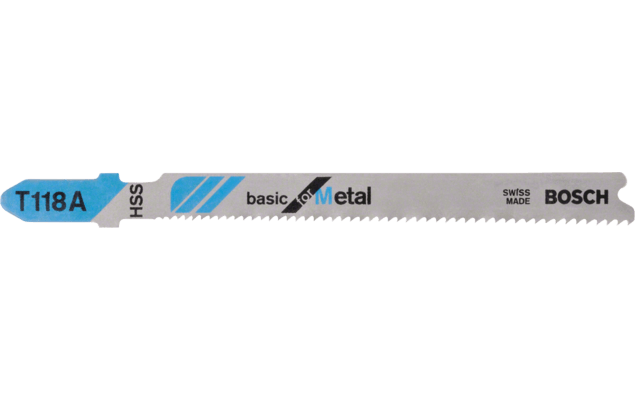 Brzeszczot T 118 AF Flexible for Metal o długości 92mm zapewnia wysoką odporność na złamanie przy prostym cięciu w metalu. Uzębienie wykonane z bimetalu i hartowanej stali szybkotnącej, w połączeniu z grzbietem z bardzo sprężystej stali wysokowęglowej eliminuje ryzyko złamania oraz gwarantuje twardość i giętkość idealną do cięcia perforowanych arkuszy o standardowej wytrzymałości. Brzeszczot posiada faliste frezowane uzębienie z bardzo drobną stopniowaną podziałką 1,1 - 1,5 mm, co pozwala na cięcie cienkiej blachy o grubości 1 - 3 mm. Przeznaczony do stosowania z wyrzynarkami z uchwytem T.