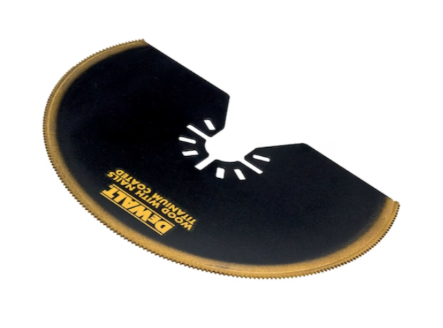 Brzeszczot półokrągły DeWalt przeznaczony jest do użytkowania z urządzeniami wielofunkcyjnymi DeWalt oraz urządzeniami oscylacyjnymi innych marek. Brzeszczot o średnicy 100 mm posiada 22 zęby na cal wykonane ze stali HSS i pokryte warstwą tytanu. Brzeszczot umożliwia sprawne precyzyjne cięcie metalu, drewna, drewna z gwoździami, PCV i płyt G-K.