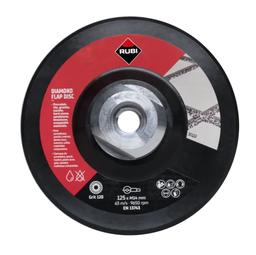 Diamentowy dysk elastyczny FLAP DISC 100/120 średni 125 mm szczególnie polecany do szlifowania płytek ceramicznych, gresu porcelanowego, kamienia naturalnego i spiekanego.