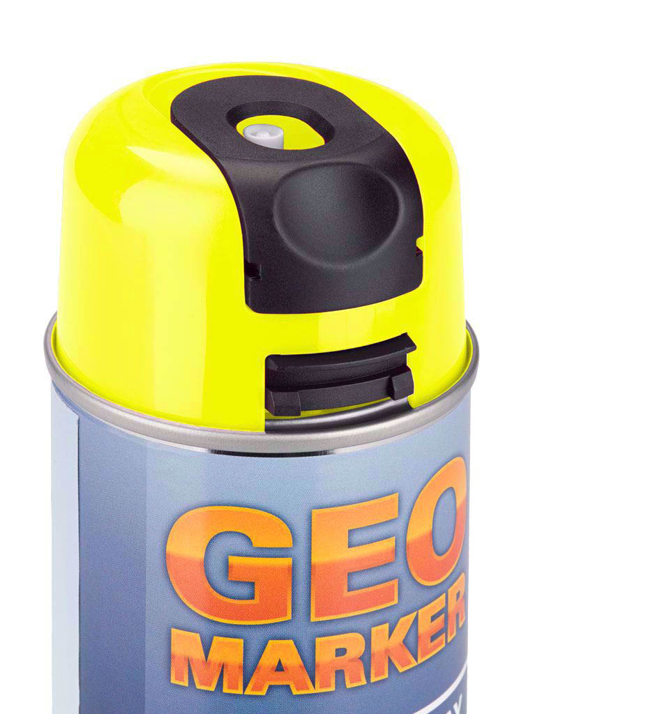 Farba geo-MARKER to specjalistyczna farba dla profesjonalistów o doskonałych właściwościach i niespotykanej funkcjonalności. Jest przeznaczona do szybkiego i precyzyjnego znakowania asfaltu, betonu, kamienia, tynków, drewna, ziemi i wielu innych powierzchni. Farba posiada doskonałe właściwości kryjące na każdej, nawet mokrej nawierzchni. Rozpylacz dookólny umożliwia aplikację w każdym położeniu puszki. Dzięki zaworowi z samoczyszczącym systemem, puszka opróżnia się w 100%. Zawór jest wyposażony w łatwą w obsłudze blokadę EasyTouch, która umożliwia aplikację farby jedną ręką.