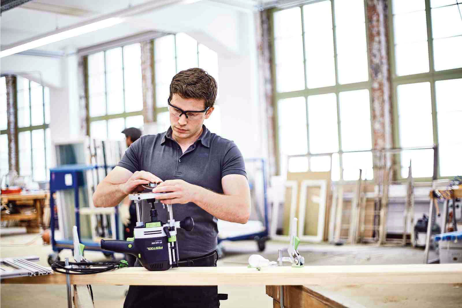 Frezarka górnowrzecionowa Festool bezproblemowo poradzi sobie z większością prac frezarskich. Jej bogate wyposażenie, łatwość obsługi i głębokość frezowania 70 mm idealnie sprawdzi się przy frezowaniu z użyciem szablonu oraz przy wykonywaniu wręgów. Przy szybkiej wymianie frezu pomoże blokada wrzeciona i technika grzechotki z przyciskiem kołyskowym, natomiast pierścień kopiujący wymienisz bez użycia narzędzi, za pomocą jednego przycisku.