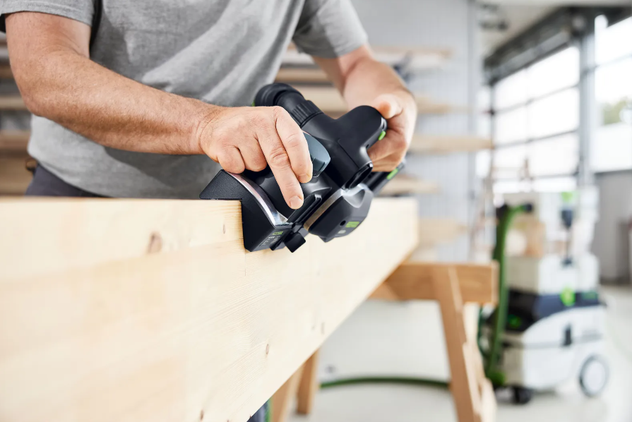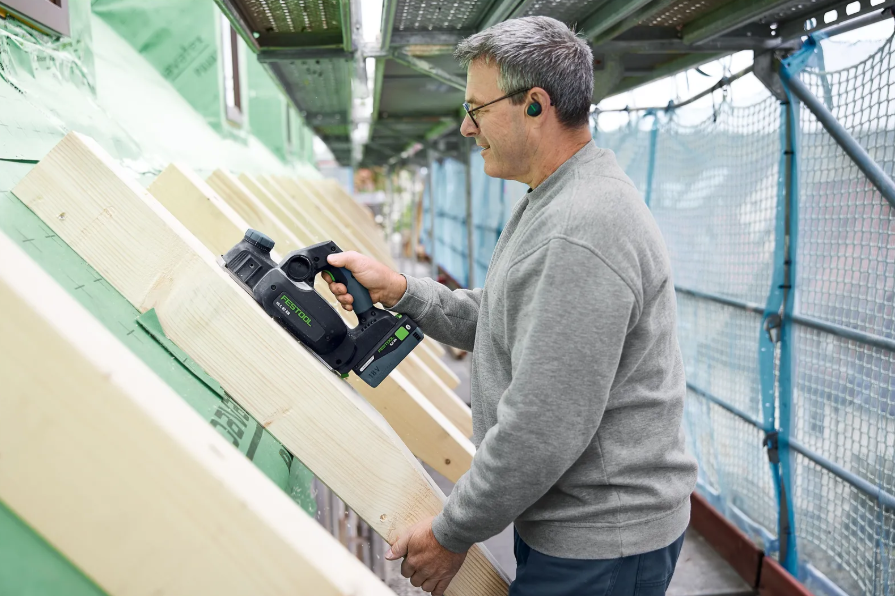 Akumulatorowy strug Festool HLC 82 to kompaktowe i niezawodne rozwiązanie do szybkich prac montażowych zarówno na budowie, jak i w warsztacie. Doskonale sprawdza się przy fazowaniu belek, obróbce przejść między krawędziami w konstrukcjach szkieletowych, wykonywaniu wręgów w drzwiach oraz precyzyjnym dopasowywaniu listew, cokołów i elementów wykończeniowych. Dzięki zasilaniu akumulatorowemu oferuje pełną swobodę pracy – niezależnie od miejsca i zastosowania.