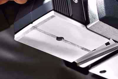 Sprężynowa stopka utrzymująca nóż z dala od powierzchni, nawet po przyłożeniu do wąskich krawędzi składa się automatycznie.