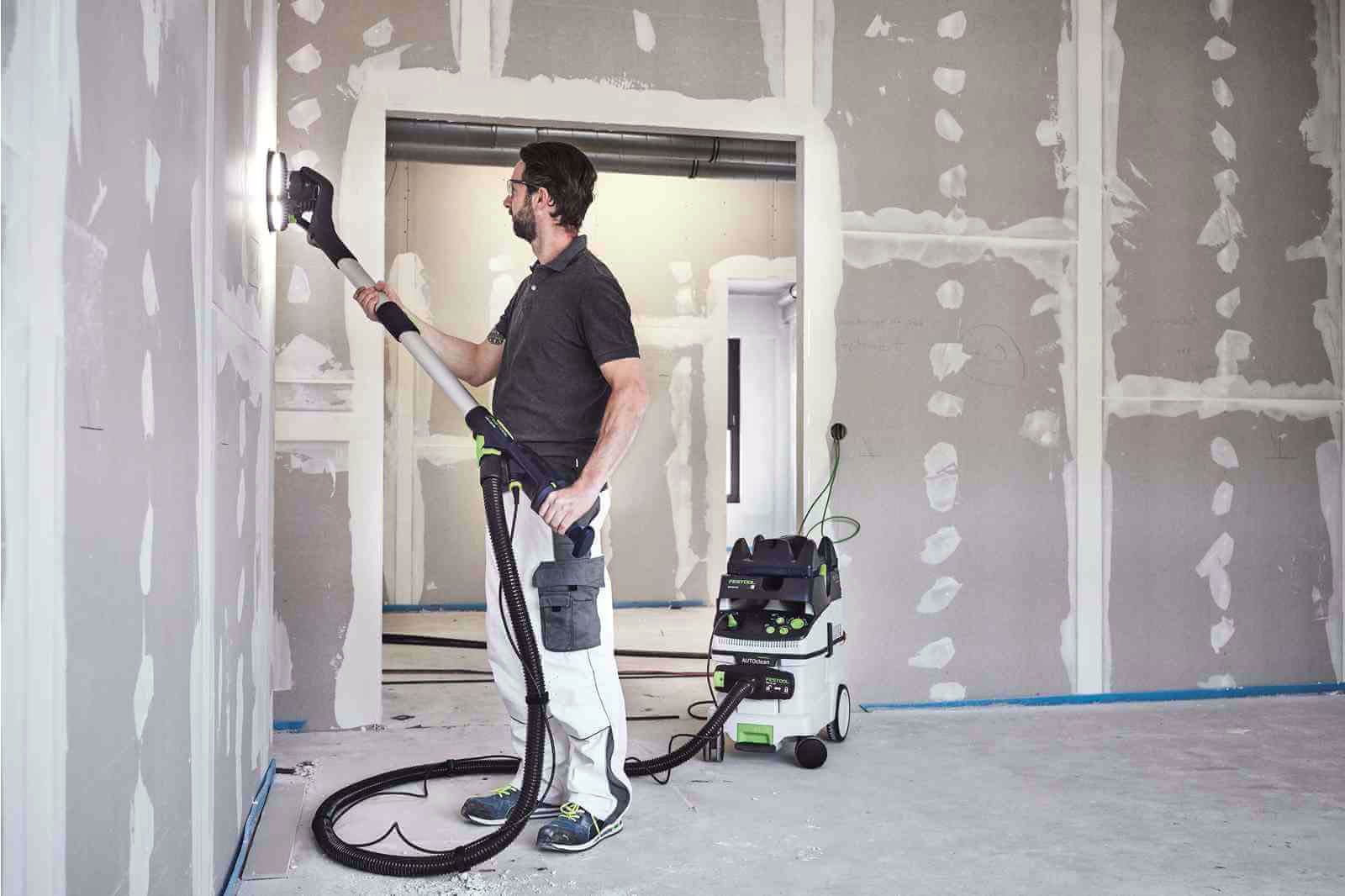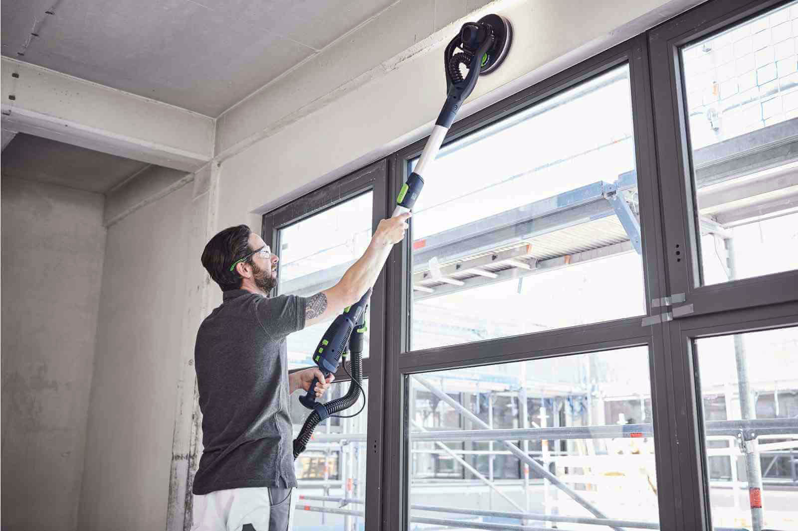 Szlifierka przegubowa LHS 2 225 EQI-Plus jest wyposażona w mocny bezszczotkowy silnik EC-TEC, zapewniający długą żywotność. Oświetlenie LED w kształcie pierścienia uwidacznia niedoskonałości już przy szlifowaniu, a w połączeniu z ruchem mimośrodowym zapewnia szybkie uzyskanie doskonałej jakości powierzchni. Idealne dopasowanie do siebie zapewnia zmienna długość robocza z możliwością zamontowania dwóch przedłużeń, natomiast przy skróconej maszynie większy zasięg zapewni wygodny uchwyt w kształcie litery T. Urządzenie odciąża ramiona i plecy utrzymując swój ciężar na ścianie i suficie, dzięki regulowanemu przysysaniu, co wpływa na wydajność i komfort szlifowania. Dodatkowo połączenie szlifierki z aplikacją Festool Work umożliwi sterowanie światłem LED oraz korzystanie z instrukcji obsługi i dodatkowych funkcji. Narzędzie łatwo przetransportujesz w Systainerze SYS3 XXL nie zajmując wiele miejsca.