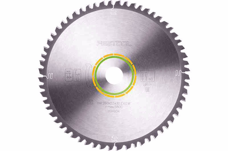 Tarcza pilarska Festool o kącie natarcia -5,00° , z zębami przemiennymi, szlifowanymi na przemian skośnie w prawo i w lewo, tnącymi naprzemiennie. Sprawdzi się w obróbce wszystkich rodzajów drewna oraz przy cięciach wzdłużnych i poprzecznych.
