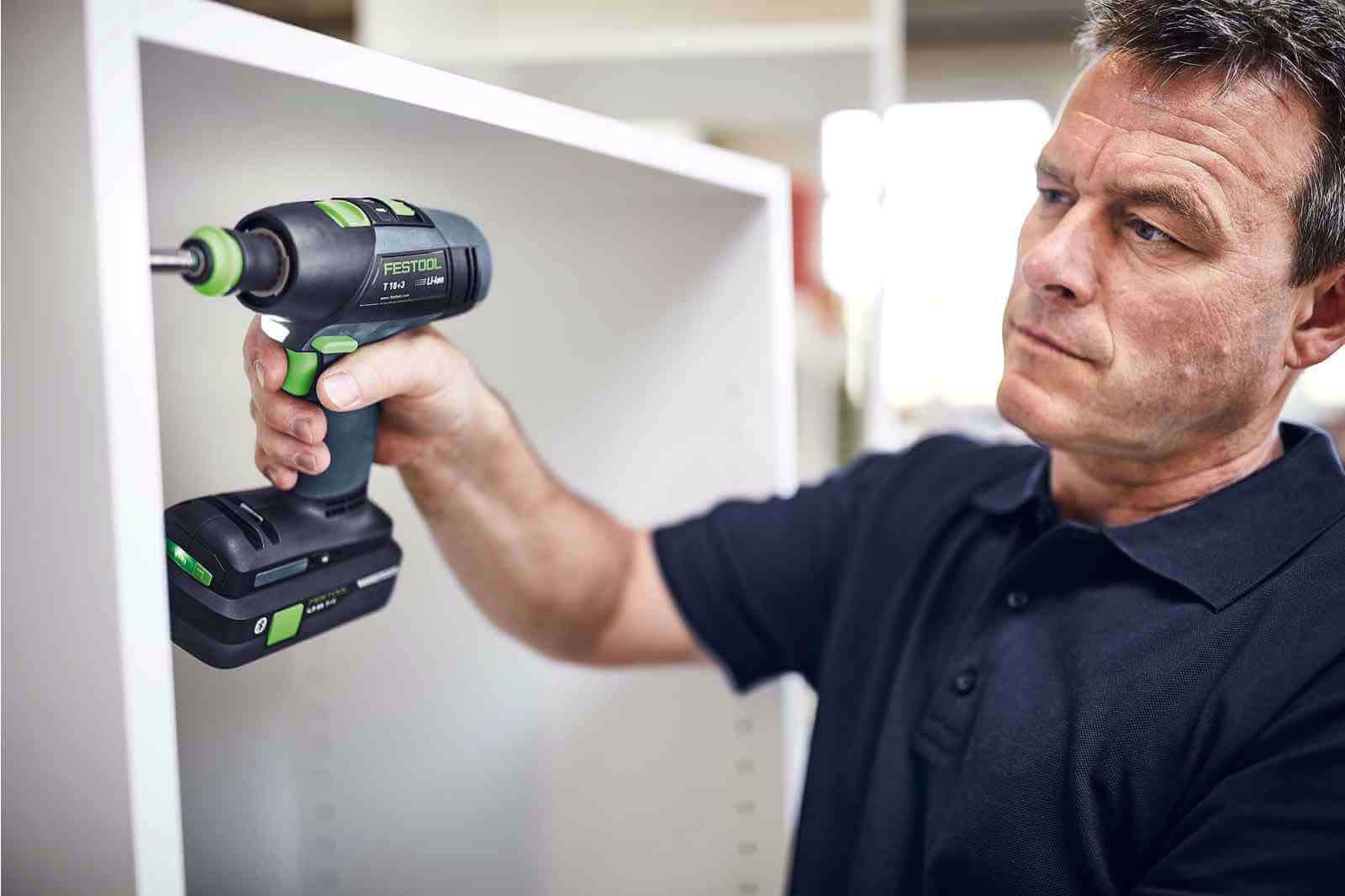 Wiertarko-wkrętarka Festool waży tylko 1,7kg, co w połączeniu z ergonomicznym kształtem pozwala na wygodną pracę w każdej pozycji. Wyposażona w bezszczotkowy silnik EC-TEC zapewni długie bezawaryjne użytkowanie. System CENTROTEC pozwala na szybkie przezbrajanie dla pracy z nasadką kątową, mimośrodową czy ogranicznikiem głębokości, a złącze FastFix umożliwia wymianę nasadek w kilka sekund. Wiertarka pozwala na elektroniczną regulację i wyłączanie momentu obrotowego dla dokładnego wkręcania. Narzędzie przy przełączaniu z wkręcania na wiercenie zachowuje ustawiony moment obrotowy. T18+3 Basic możesz łączyć ze wszystkimi Systainerami poprzednich generacji, odkurzaczami i innymi elementami wyposażenia systemowego.
