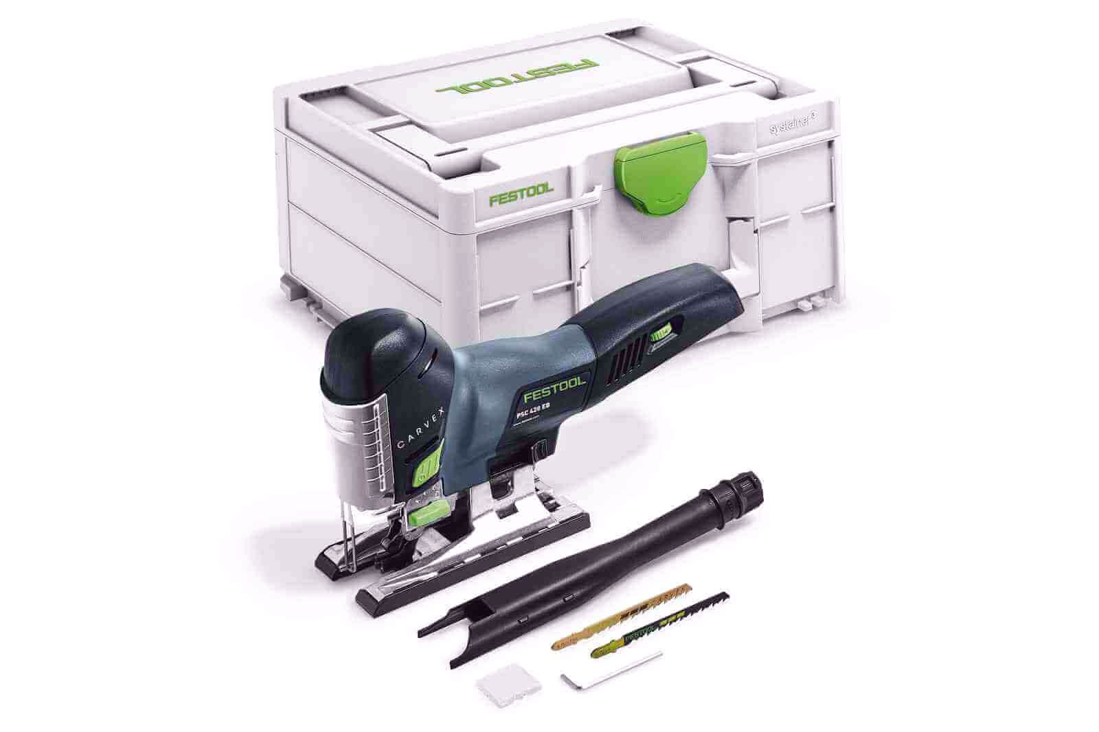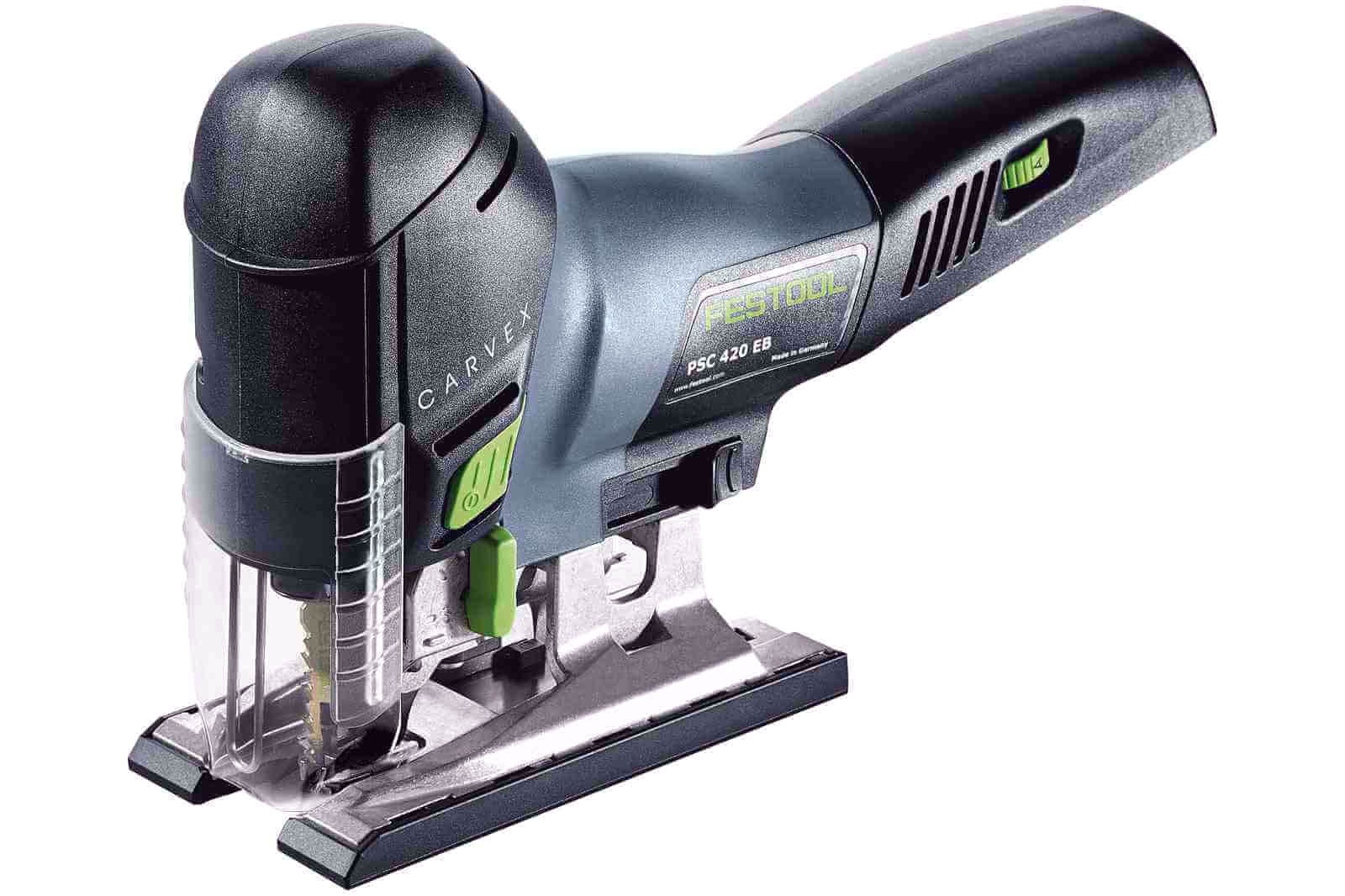 Wyrzynarka wahadłowa CARVEX PSC 420 EB-Basic to urządzenie o ergonomicznej konstrukcji z uchwytem typu Softgrip, ważące zaledwie 2,3 kg. Umożliwia łatwe operowanie osobom prawo- i leworęcznym, dzięki umieszczeniu włączników po obu stronach narzędzia. Wyjątkową moc urządzenia zapewnia 3800 suwów na minutę z silnikiem bezszczotkowym EC-TEC. Wyrzynarka gwarantuje najlepszą precyzję cięcia, dzięki prowadnicy suwakowej i przestawianym równolegle szczękom prowadzącym, które pełnią funkcję trzeciej prowadnicy brzeszczotu. CARVEX umożliwia wymianę ostrza jedną ręką, bez użycia narzędzi, co znacznie skraca czas przezbrajania. Urządzenie wyposażone jest również w światło stroboskopowe, które pozwala na optyczną stabilizację ostrza i jak najlepszą widoczność linii cięcia. Wyrzynarka sprawdzi się nawet przy niewielkich okręgach, o promieniu od 34mm do 1,5m, dzięki cyrklowi do wycinania okręgów oraz dopasowanego brzeszczotu jak np. S 75/4 K. Dzięki szybko wymiennemu stołowi kątowemu łatwo wykonasz cięcia ukośne oraz cięcia od spodu w zakresie od 0 do 45°. Narzędzie zapewnia wydajne odsysanie, dzięki opuszczanej osłonie ssącej.
