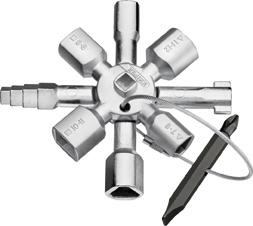 Ciśnieniowy odlew cynkowy. Złożony z dwóch krzyżów, które można połączyć magnesem. Podwójne ostrze płaskie 1 x 7 mm/krzyżowy PH 2 na lince ze stali nierdzewnej. Ze stopniowanym czworokątem wewnętrznym 6–7–8–9 mm, stopniowanymi zewnętrznymi czworokątami 6–7 mm; 8–9 mm i 10–11 mm, stopniowanymi zewnętrznymi trójkątami 7–8 mm; 9–10 mm i 11–12 mm, podwójną bródką 3–5 mm, półksiężycem 6 mm oraz z czworokątnym kluczem do zaworów grzejnikowych 5 mm.