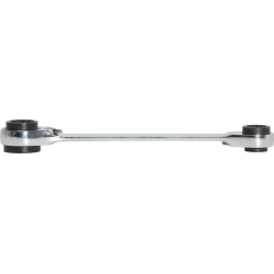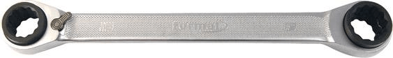 Stal chromowo-wanadowa, chromowane z poręcznym profilowanym trzonkiem. Precyzyjnie uzębiony mechanizm grzechotki z 72 zębami i kątem pracy wynoszącym tylko 5°. Każdy klucz posiada 4 rozmiary. Momenty obrotowe są bardziej optymalnie niż wymagania DIN 3110, ISO 3318.