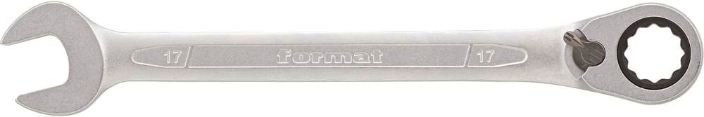 Klucz płasko-oczkowy z grzechotką 14 mm marki Format wykonany został ze stali chromowo-wanadowej, odkuwany i chromowany matowo. Główka klucza odchylona pod kątem 15 stopni znacznie ułatwia pracę w trudno dostępnych miejscach. Klucz z owalną rękojęścią poprawia komfort chwytu. Precyzyjny mechanizm zapadkowy z kątem powrotu zapadki 5° posiada 72 zęby, a jego momenty obrotowe przewyższają wymagania norm DIN 3110, ISO 3318. Klucz płasko-oczkowy z grzechotką Format sprawdzi się w profesjonalnych serwisach mechanicznych i samochodowych.