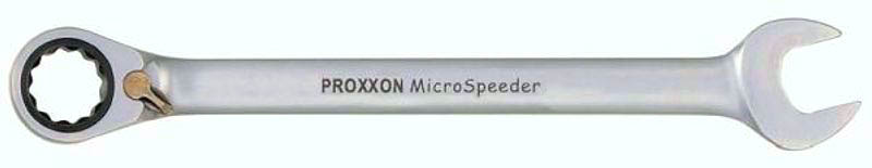 Klucz płasko-oczkowy z grzechotką MicroSpeeder stworzony został z myślą o precyzji - bez ostrych kantów i krawędzi, tak aby idealnie leżał w dłoni, a praca nim była łatwa i skuteczna. Ponadto wartą uwagi zaletą kluczy Proxxon jest optymalne zabezpieczenie przeciw korozji - klucze są podwójnie niklowane i 1x chromowane. Posiadają także trwałe, czytelne laserowe wypalenie nazwy i wielkości. Klucz Proxxon MicroSpeeder posiada 72 zębowy pierścień wewnętrzny z wysoko stopowej stali, który stwarza napęd już przy odchyleniu 5%. Ekstremalne momenty obrotowe osiągane przy użyciu klucza Proxxon przekraczają normy DIN/ISO.
