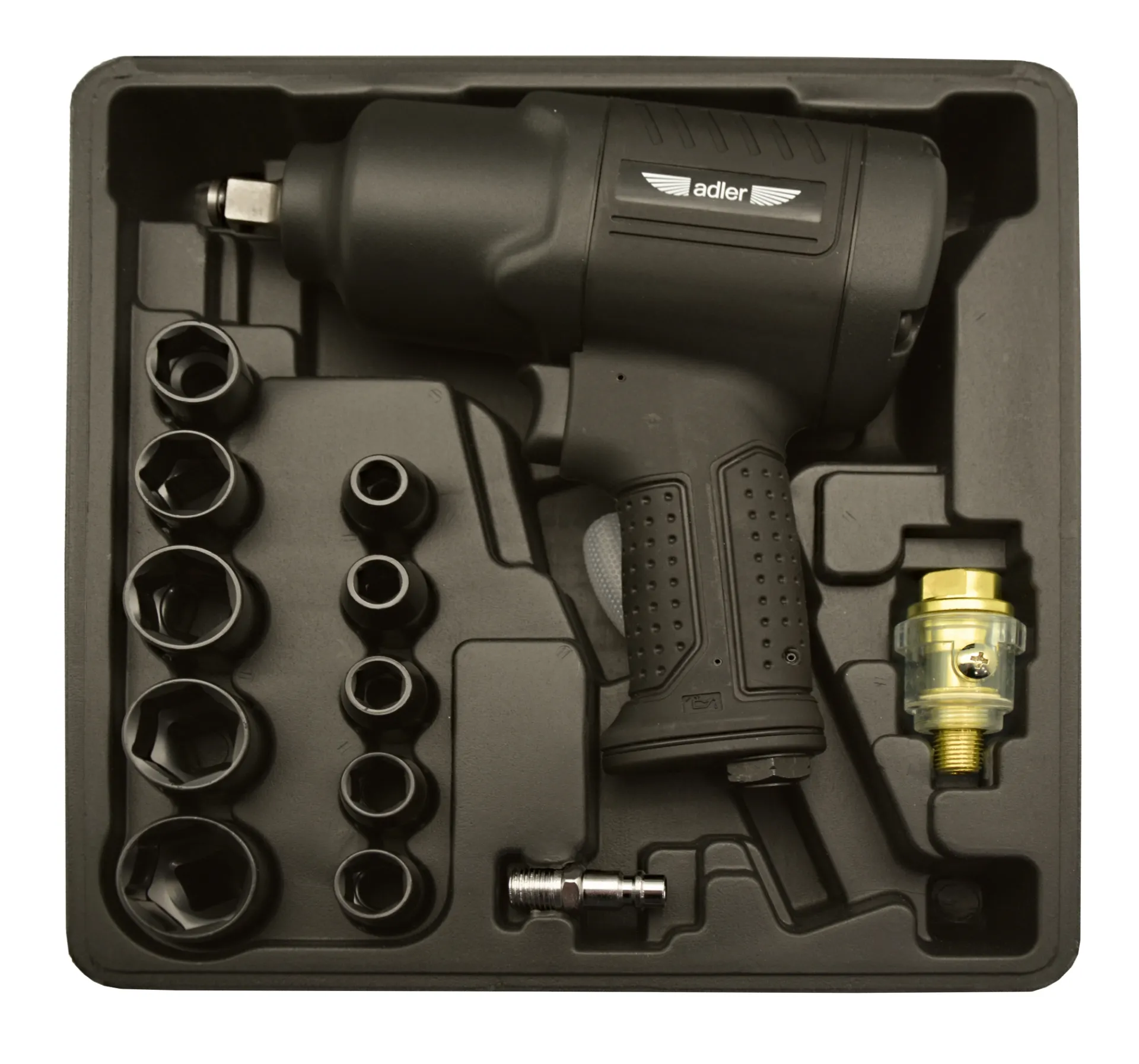 Pneumatyczny klucz udarowy 1/2" 1590 Nm kompozytowy AD-1907 to narzędzie przemysłowe i warsztatowe o szerokim zastosowaniu. Wykorzystywany jest w pracach montażowych i demontażowych, przy liniach produkcyjnych, w warsztatach naprawczych i serwisach samochodowych, znajduje zastosowanie w domowych pracach garażowych. Jego zalety to trwałość, ergonomia pracy, komfort użytkowania, funkcjonalność, niska awaryjność, odporność na trudne warunki pracy (kurz, zawilgocenie, itp.). Model AD-1907 posiada lekką obudowę z tworzywa kompozytowego. Wykorzystane podzespoły, precyzja montażu oraz dbałość o każdy detal zadowoli każdego użytkownika. Mechanizm udarowy typu TWIN HAMMER szybko generuje wysoki moment obrotowy. W podzespołach klucza AD-1907 zastosowano kilka udoskonaleń technicznych które w znacznym stopniu polepszają charakterystykę pracy i moc klucza.