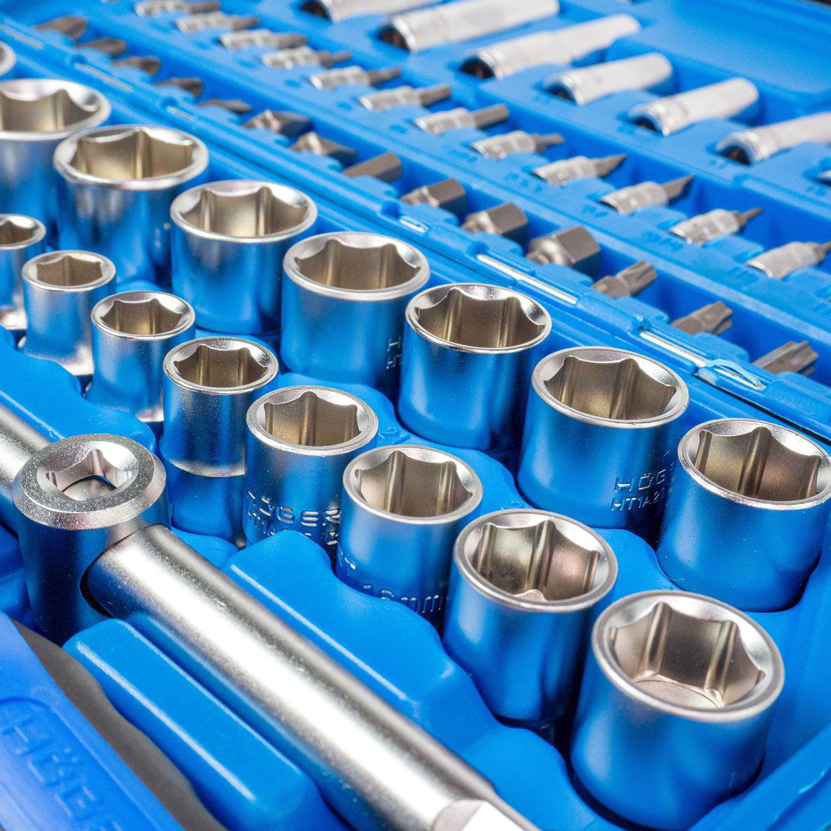 Zestaw Hogert złożony z 144 szt. narzędzi umożliwia szeroki zakres zastosowań. Solidne nasadki, końcówki i akcesoria są odkuwane matrycowo i wykonane z wysokogatunkowej stali stopowej CrV ( stal chromowo-wanadowa ), co gwarantuje odporność na odkształcenia i uszkodzenia. Grzechotka Hogert z mechanizmem zapadkowym 72 zęby wykonana została ze stali stopowej CrMo ( chromowo-molibdenowej ), co zwiększa trwałość mechanizmu i znacznie poprawia precyzję pracy. Zestaw zapakowany jest w dwukolorową walizkę z metalowymi klamrami i zawiasami, dzięki czemu jest łatwy w transporcie, a praktyczne ustawienie elementów kompletu znacznie poprawia organizację pracy.