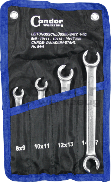 4 klucze oczkowe otwarte: 8 x 9 mm, 10 x 11 mm, 12 x 13 mm, 14 x 17 mm.