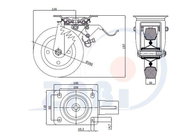 Koło metal-guma d-80 mm skrętne hamulec 60 kg Zabi 6H