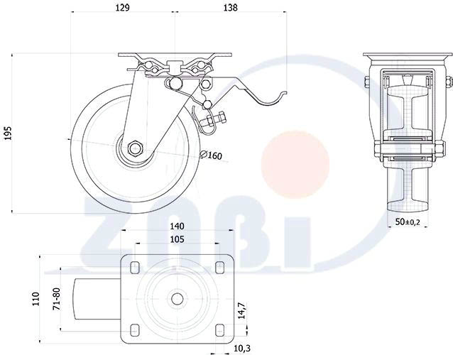 Koło metal-guma d-80 mm skrętne hamulec 60 kg Zabi 6H