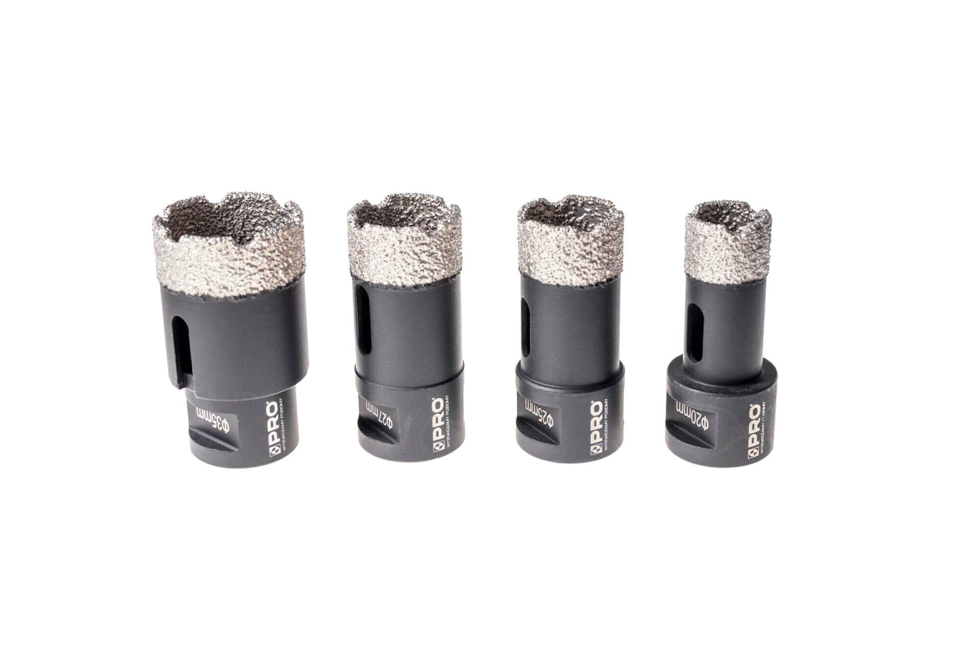 Koronki diamentowe PRO, dzięki specjalnie opracowanemu rdzeniowi wiertniczemu pozwalają na wiercenie w najtwardszych materiałach. Sprawdzą się przy wykonywaniu otworów m.in. w płytkach ceramicznych i kamiennych, gresie, szkle, betonie, glazurze, terakocie itp.