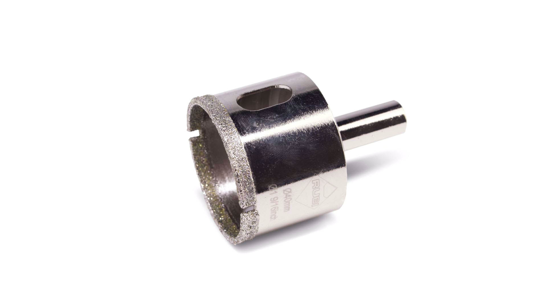 Koronka EASY GRES marki RUBI o średnicy 40 mm . Wiertło diamentowe powlekane jest elektrolitycznie. Posiada boczny otwór pozwalający na lepsze chłodzenie oraz usuwanie pozostałości po wywierceniu otworu. Koronki RUBI przeznaczone są pracy z wiertarkami elektrycznymi bez udaru. Należy pamiętać, aby przed rozpoczęciem pracy sprawdzić wiertło oraz je wyczyścić. Wiertła EASY GRES zapewniają dobre wykończenie otworu oraz trwałość jeśli przestrzegamy wielkości obrotowych oraz nie wywieramy nadmiernego nacisku na wiertło. Zaleca się szybkość roboczą wiertła od 400 do 1000 obr./min w zależności od rodzaju wierconego materiału. Koronki EASY GRES umożliwiają wykonanie otworów o głębokości do 25 mm w gresie, gresie porcelanowym, granicie, marmurze i szkle.