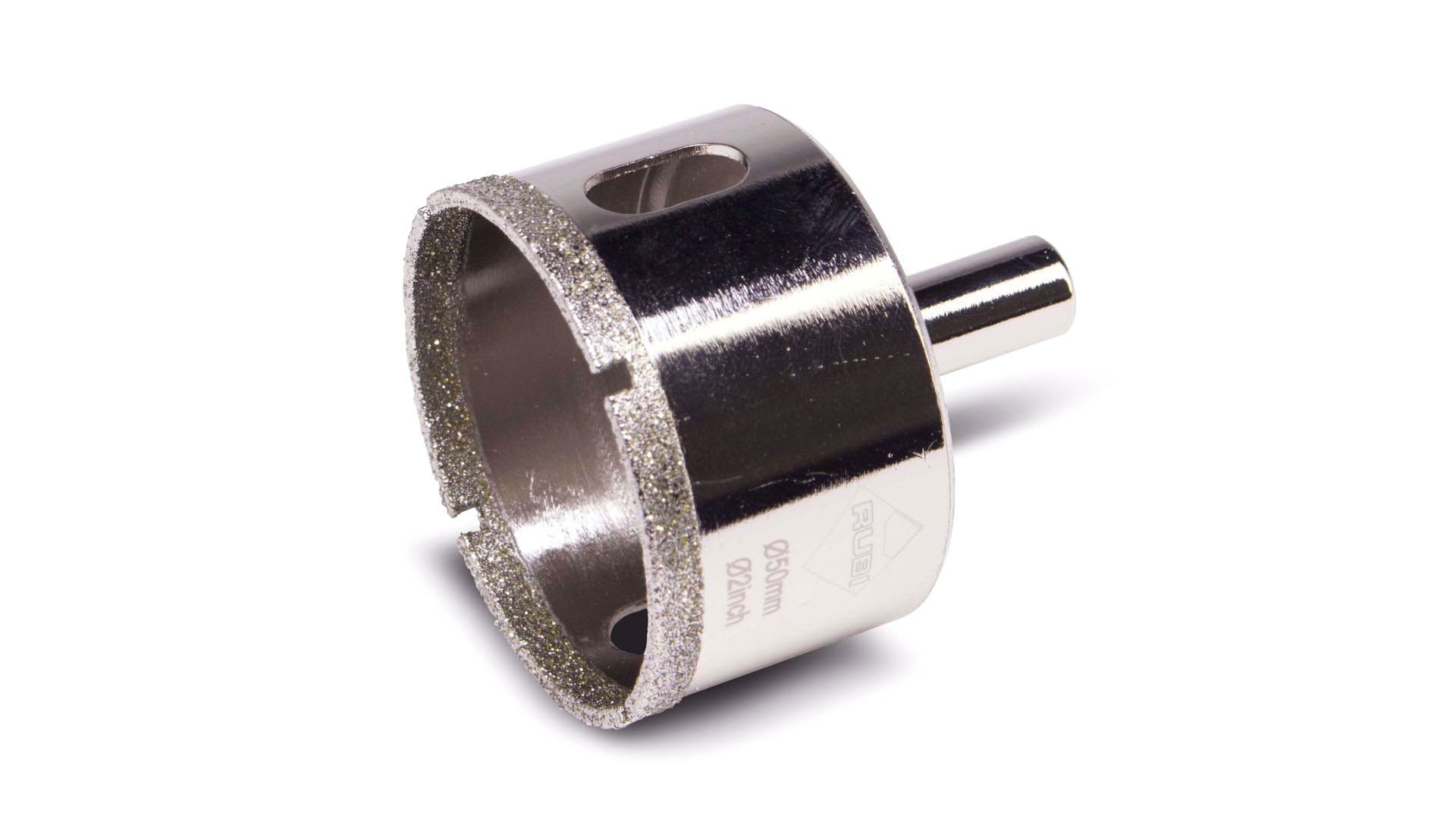 Koronka EASY GRES marki RUBI o średnicy 50 mm . Wiertło diamentowe powlekane jest elektrolitycznie. Posiada boczny otwór pozwalający na lepsze chłodzenie oraz usuwanie pozostałości po wywierceniu otworu. Koronki RUBI przeznaczone są pracy z wiertarkami elektrycznymi bez udaru. Należy pamiętać, aby przed rozpoczęciem pracy sprawdzić wiertło oraz je wyczyścić. Wiertła EASY GRES zapewniają dobre wykończenie otworu oraz trwałość jeśli przestrzegamy wielkości obrotowych oraz nie wywieramy nadmiernego nacisku na wiertło. Zaleca się szybkość roboczą wiertła od 400 do 1000 obr./min w zależności od rodzaju wierconego materiału. Koronki EASY GRES umożliwiają wykonanie otworów o głębokości do 25 mm w gresie, gresie porcelanowym, granicie, marmurze i szkle.