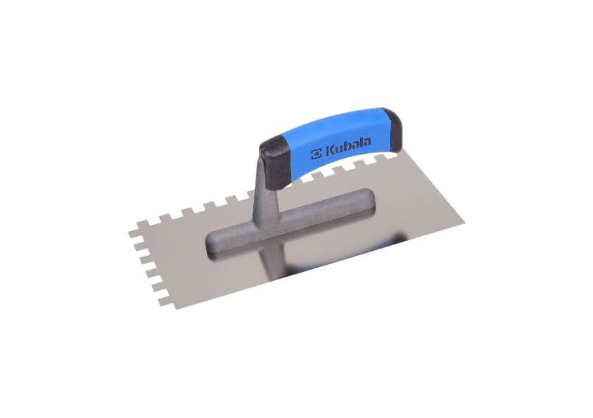 Paca Kubala o wymiarach 130 x 270 mm z zębem 8 x 8 wykonana ze stali nierdzewnej, kwasoodpornej o grubości 0,7 mm. Paca posiada ergonomiczny, dwuskładnikowy wyprofilowany uchwyt na stopce z tarnamidu. Paca Kubala przeznaczona jest do rozprowadzania zapraw klejowych.