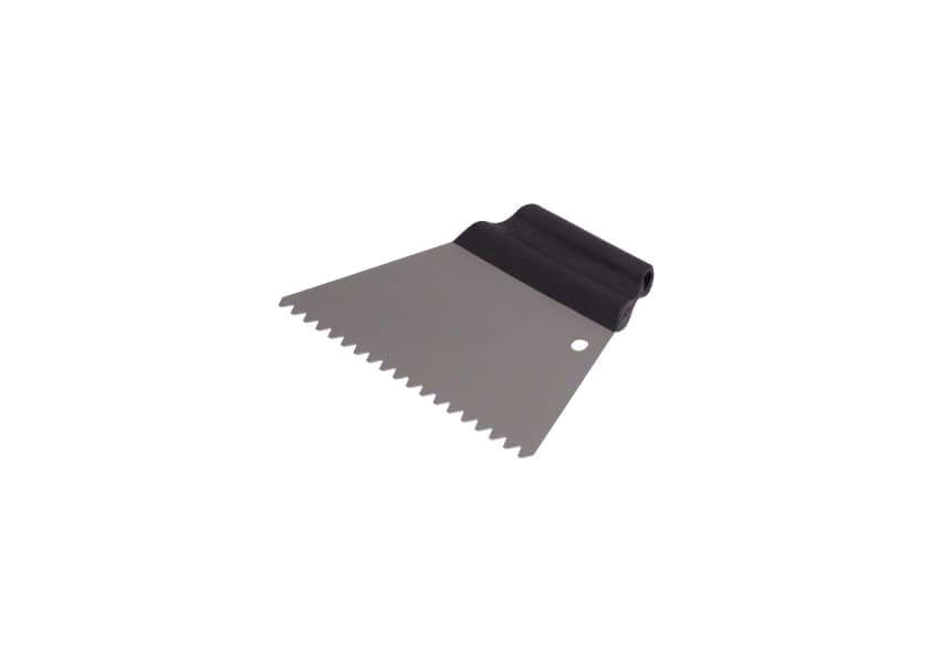 Szpachla do kleju Kubala o szerokości 180 mm z zębem 4 x 4. Szpachla wykonana została ze stali o grubości 0,5 mm. Posiada uchwyt z tworzywa PP - polipropylenu. Szpachla przeznaczona jest do rozprowadzania zapraw i klejów na małych powierzchniach.