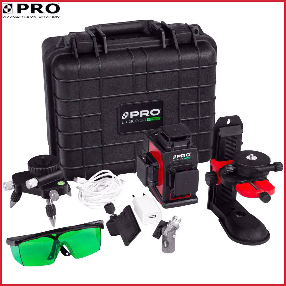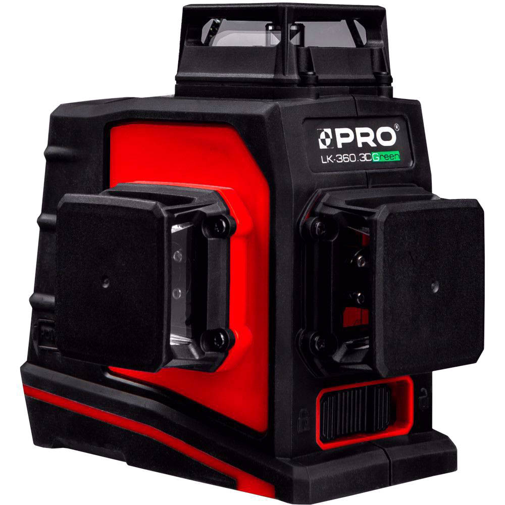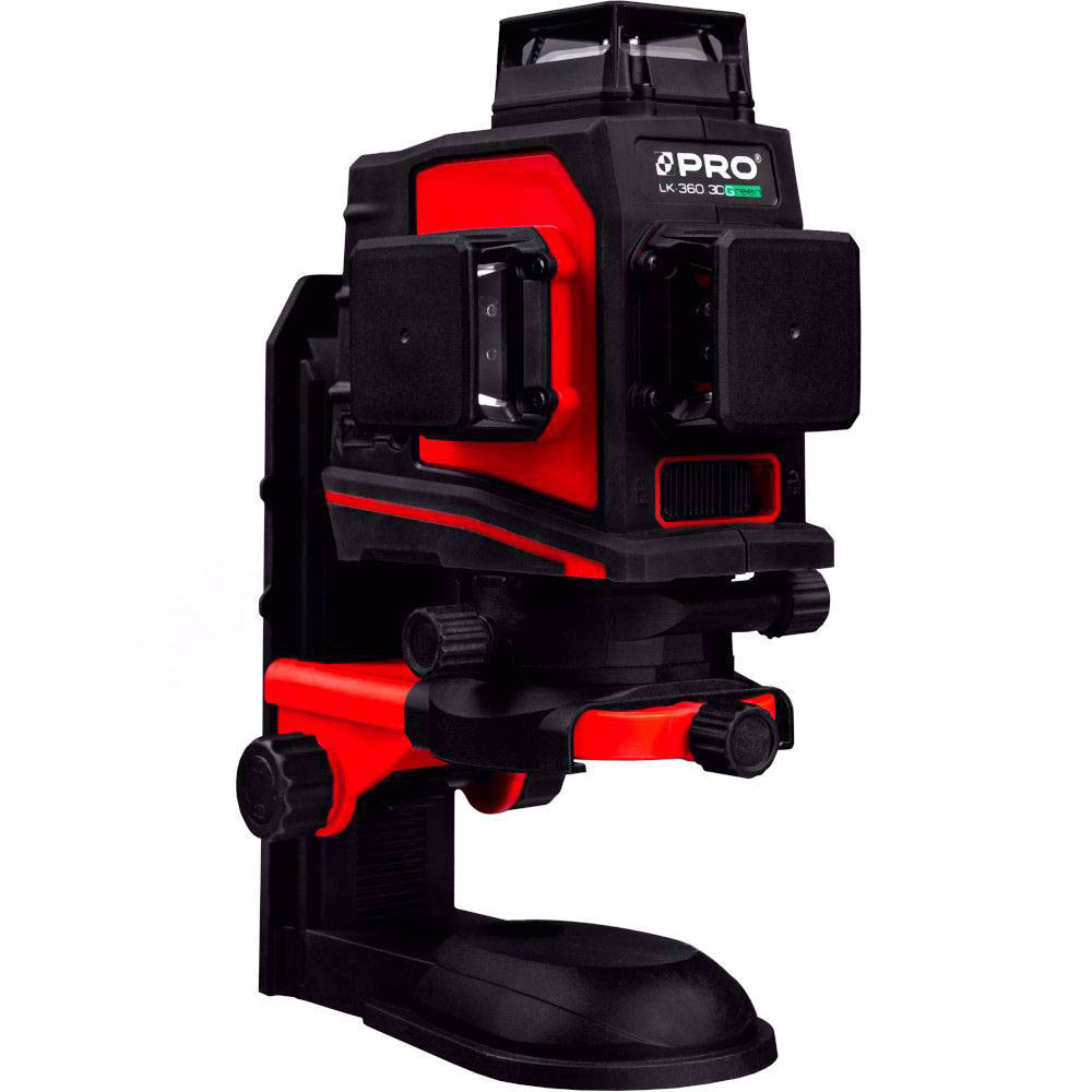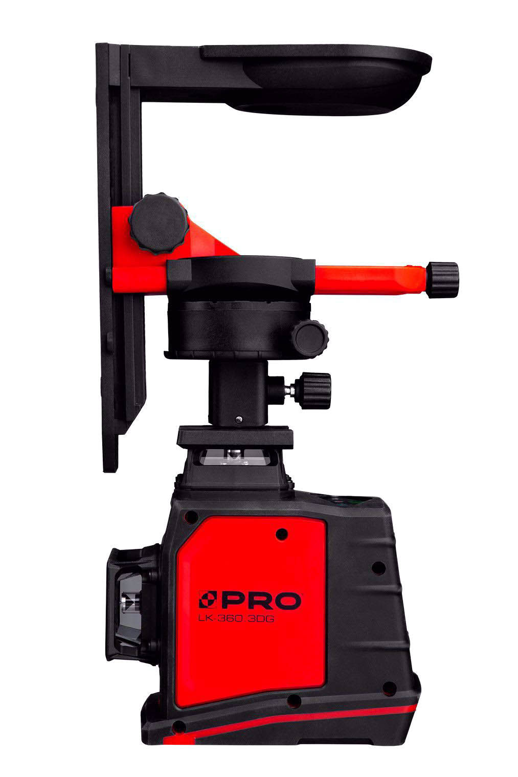 Laser wieloliniowy LK-360.3D generuje trzy płaszczyzny 360°, jedną poziomą oraz dwie płaszczyzny pionowe przecinające się pod kątem 90°. Wyposażony został w funkcję pionownika laserowego, która umożliwia wyświetlenie osi krzyża na suficie oraz podłożu. Laser pozwala także na zwiększenie zasięgu przy użyciu trybu pulsacyjnego do pracy z detektorem wiązki laserowej.