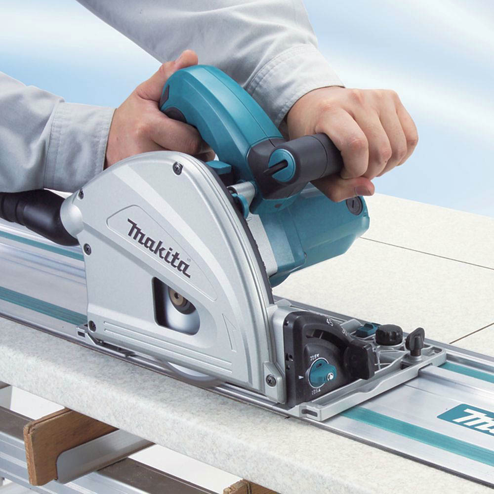 Ostrze zagłebiarki wymienisz szybko i sprawnie, dzięki dźwigni blokującej, która zatrzymuje tarczę. Stałą prędkość pod obciążeniem gwarantuje eleketroniczna kontrola prędkości. Narzędzie umożliwia czystą pracę z wyrzutnikiem wiórów w tył względem kierunku cięcia i możliwością podłączenia do urządzenia odsysającego. Kompatybilna z szynami prowadzącymi Makita 1,4 m, 1,5 m, 1,9 m, 2,85 m i 3,0 mm.