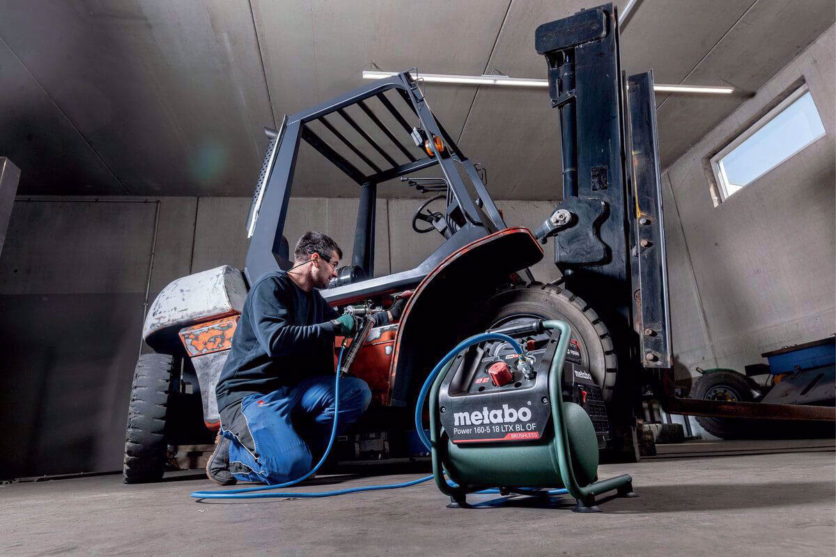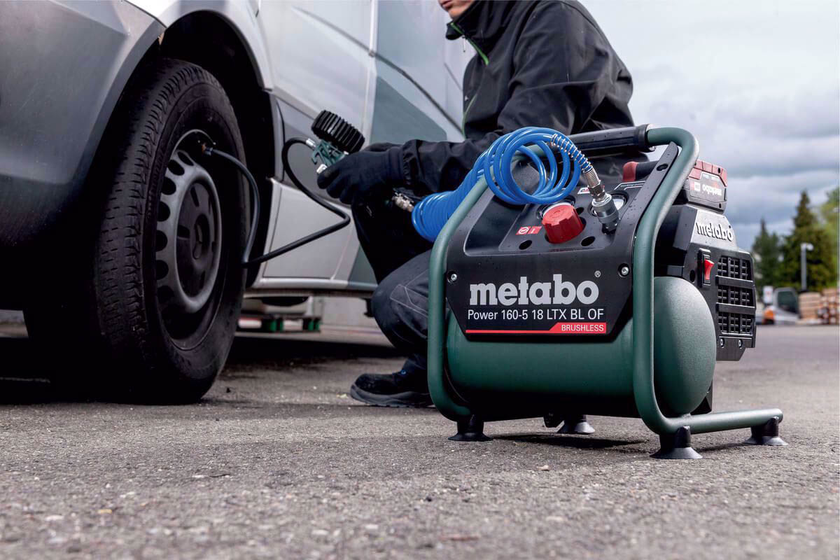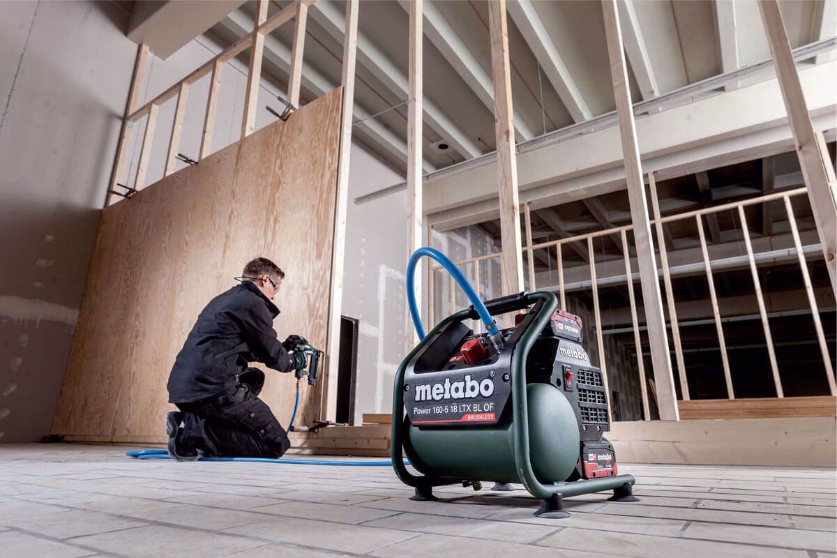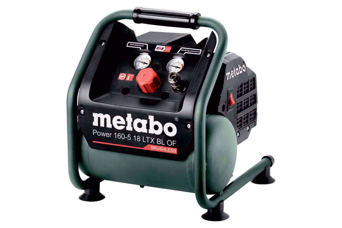 Sprężarka Metabo o wymiarach 340 x 315 x 380 mm i wadze tylko 9,1kg sprawdzi się przy wykańczaniu wnętrz i zastosowaniach budowlanych. Wyposażona w silnik bezszczotkowy zapewni długie bezawaryjne użytkowanie. Dobrze widoczne wskaźniki z manometrami zapewniają łatwy odczyt ciśnienia w zbiorniku i ciśnienia roboczego, a reduktor z manometrem pozwala na regulację ciśnienia wyjściowego. Sprężarka tłokowa bezolejowa jest łatwa w transporcie i umożliwia przechowywanie drugiego akumulatora dla wydajnej pracy bez przerywania. Urządzenie możesz łączyć ze wszystkimi akumulatorami 18V i ładowarkami marek CAS.