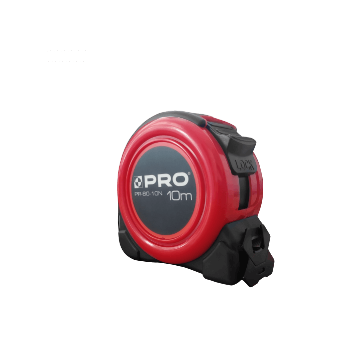 Miara zwijana PRO o długości 10 m. Posiada dwustronną taśmę o szerokości 32 mm pokrytą nylonem. Kaseta miary wykonana została z wysokiej jakości tworzywa sztucznego z domieszką gumy. Pracę z miarą PRO ułatwia górny hamulec zaciskowy i specjalistyczny duży hak - otwór na śruby i wkręty mocowany czterema nitami. Miarę z łatwością można zawiesić przy pasku za pomocą specjalnego zaczepu.