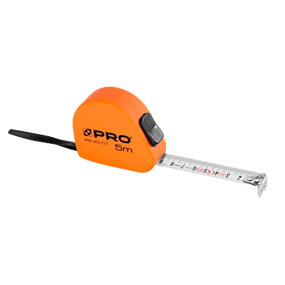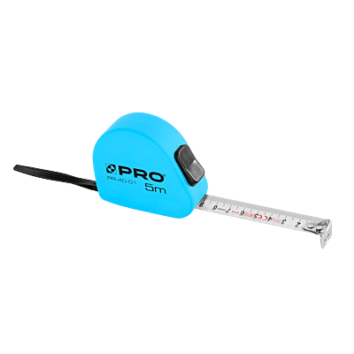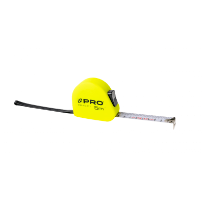 Miara zwijana o długości 5 m z hamulcem, marki PRO to niezbędnik na każdym montażu. Ergonomiczna kaseta miary została wykonana z tworzywa TPR, co zapewnia komfortową pracę. Miara PRO o szerokości 16mm posiada podziałkę w II klasie dokładności. Urządzenie zostało wyposażone w dwa funkcjonalne hamulce - zapadkowy i dolny. Oznaczenie kasety i jej kształt umożliwiają pomiar długości od tylnej ścianki obudowy taśmy. Komfort użytkowania poprawia wygodna tasiemka na rękę, praktyczny zaczep na gwoździe i śruby oraz trwały, metalowy zaczep do paska.