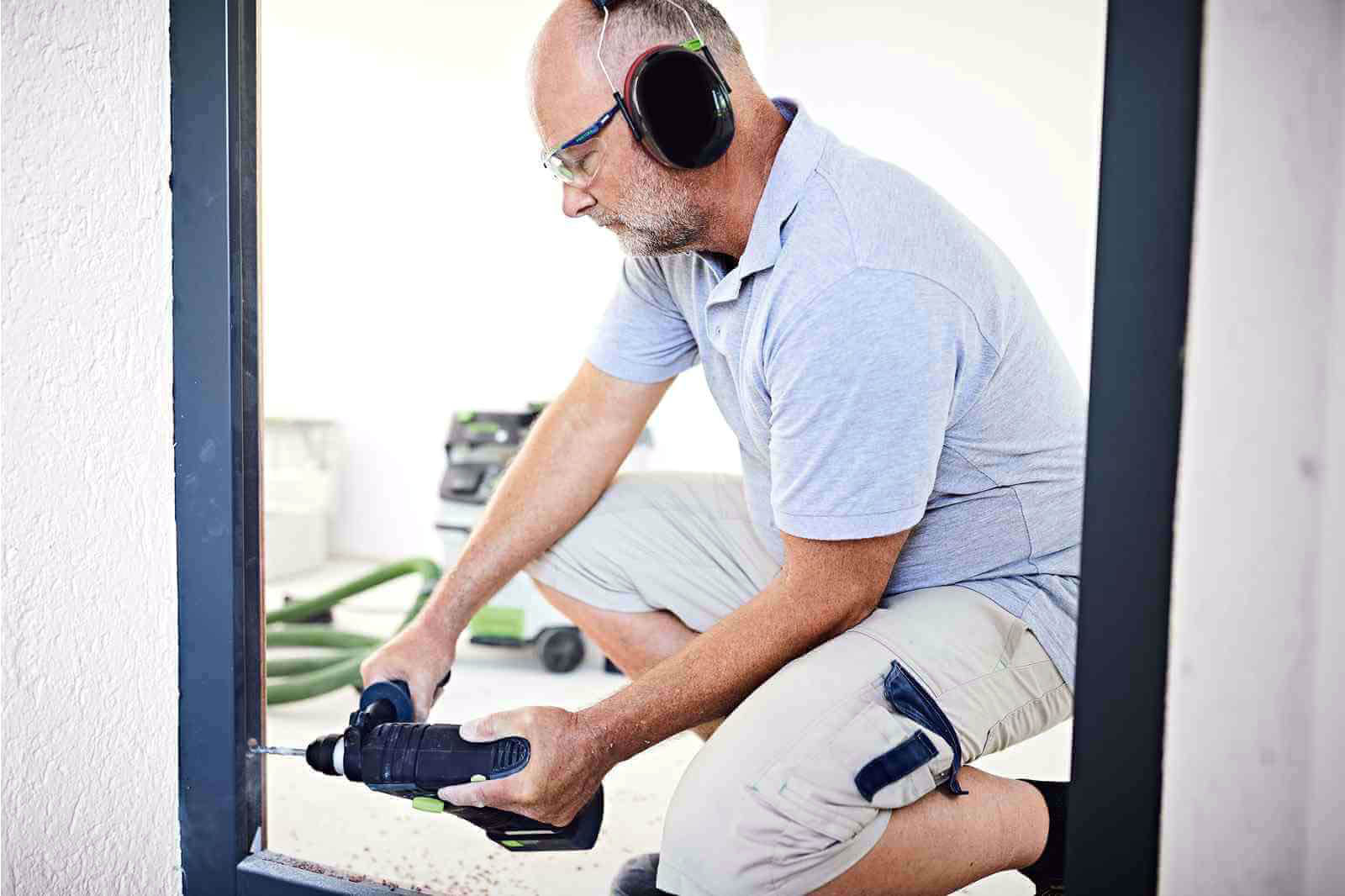 Młotowiertarkę dostosujesz do swoich potrzeb łącząc ją z akumulatorami Festool - przy mniej wymagających zastosowaniach z akumulatorem 3,1 Ah Compact czy przy pracach wymagających pełnej mocy z akumulatorem 4,0 Li-HighPower Compact. Urządzenie, dzięki dyszy do zwiercin pozwala na pracę bez pyłu, a akumulatory z funkcją Bluetooth automatycznie uruchamiają podłączony odkurzacz mobilny CLEANTEC po uruchomieniu narzędzia.
