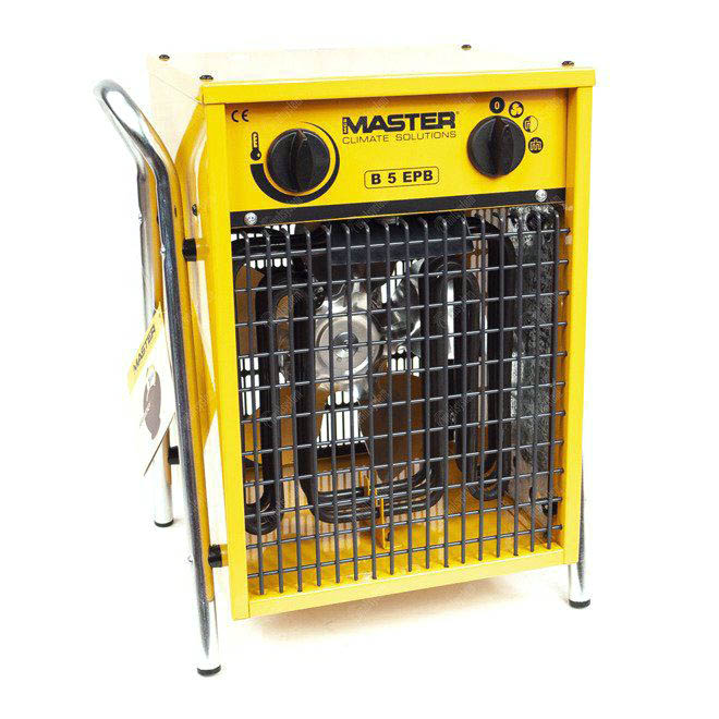 Nagrzewnica elektryczna Master B 5 EPB to solidne urządzenie pozwalające skutecznie nagrzać wszelkie pomieszczenia. Nagrzewnica o mocnej i trwałej stalowej konstrukcji zbudowana została z najwyższej jakości materiałów, co zapewnia wydajność i dłuższą żywotność. Wyposażona została w silnik z wyłącznikiem termicznym oraz liczne udogodnienia mające wpływ na bezpieczeństwo użytkowania, takie jak termostat przegrzania czy termostat pomieszczeniowy. Elementy grzewcze wykonane zostały ze stali nierdzewnej, co gwarantuje trwałość. Urządzenie posiada rączke na górnej części obudowy i waży tylko 6,4 kg, dzięki czemu jest łatwe i wygodne w transporcie. Zaletą nagrzewnicy Master jest możliwość stosowania jej wyłacznie do wentylacji. Ponadto B 5 EPB nie zużywa tlenu, nie wytwarza spalin, nieprzyjemnego zapachu czy wilgoci. Prosta w obsłudze nagrzewnica sprawdzi się w każdych warunkach - czysto, efektywnie i bezpiecznie ogrzewając różne pomieszczenia, w tym: pomieszczenia mieszkalne, sklepy, magazyny, lokale handowe, szklarnie, zabudawania fabryczne, lokale gastronomiczne.