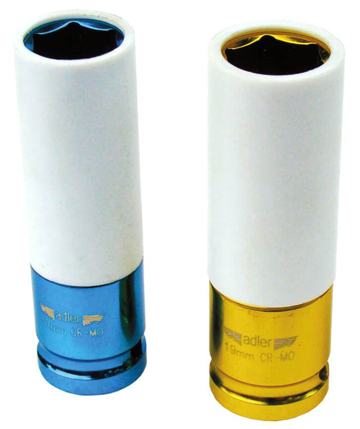 Specjalistyczne nasadki udarowe Adler, przeznaczone do współpracy z urządzeniami pneumatycznymi, które pracują w bardzo ciężkich warunkach pod zmiennymi obciążeniami. Nasadki wykonano ze stali chromowo molibdenowej (Cr-Mo). Stal Cr-Mo to unikalna stal stopowa, która posiada dwukrotnie większą wytrzymałość na rozciąganie od zwykłej stali węglowej oraz trzykrotnie wyższą granicę plastyczności. Nasadki Adler przez wydłużony czas zachowują swój nominalny wymiar oraz nie pękają pod wpływem pracy udarowej. Szczególnie polecane do profesjonalnych serwisów ogumienia oraz samochodowych. W naszej ofercie posiadamy zestawy nasadek udarowych krótkich, długich, krótkich plus długich, zestawów do felg aluminiowych oraz nasadek pojedynczych w rozmiarach 1/2" oraz 3/4".