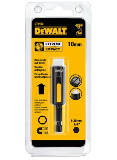 Nasadka udarowa magnetyczna DeWalt 10 mm o długości 75 mm przeznaczona do stosowania z wiertarko-wkrętarkami i zakrętarkami udarowymi. Nasadka umożliwia sprawne usuwanie zanieczyszczeń z końcówki magnetycznej. Ponadto wyjątkowa budowa nasadki, czyli zaokrąglone narożniki zmniejszają ryzyko uszkodzenia główek wkrętów, a jednocześnie pozwalają na korzystanie z wkrętów o wysokich i niskich główkach, co znacznie poszerza zakres zastosowań.