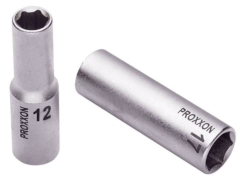 Nasadka Proxxon 17mm 1/2" o długości całkowitej 79mm przeznaczona jest do daleko wystających gwintów. Nasadka ulepszona poprzez SYSTEM-DRIVER gwarantuje sprawne odkręcanie nawet najbardziej zapieczonych śrub, bez ich uszkodzenia. System ten powoduje, że przełożenia napędu odbywają się na płaszczyznach śrub i nakrętek, a nie tylko na załamaniach. Nasadka Proxxon rewelacyjnie radzi sobie z mocno osadzonymi śrubami, dzięki sześciokątnym, równym zagłębieniom.