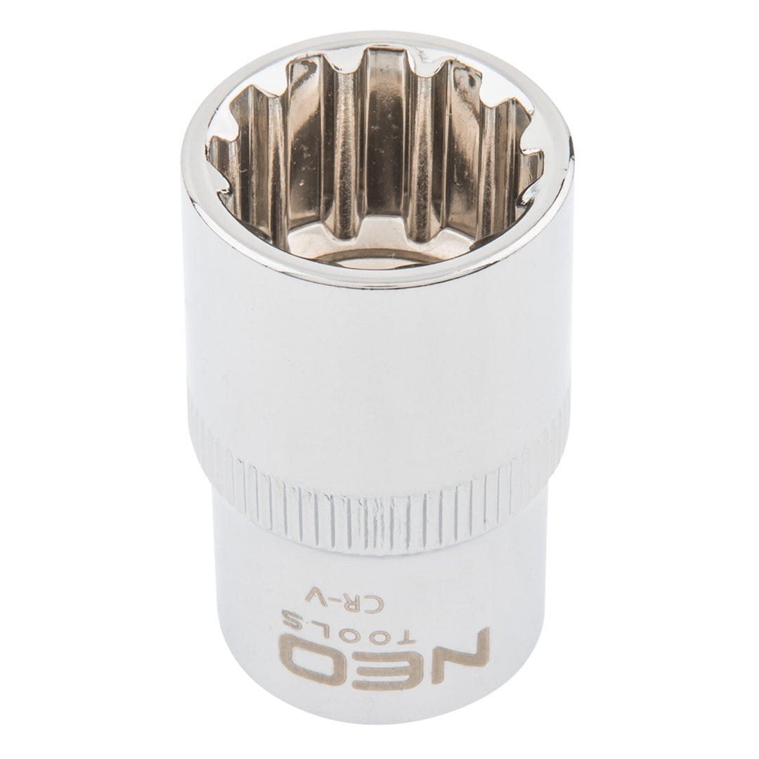 Nasadka SPLINE NEO Tools o rozmiarze 16 mm to solidne narzędzie przeznaczone zarówno dla profesjonalistów, jak i wymagających majsterkowiczów. Wykonana z wysokiej jakości stali chromowo-wanadowej CrV zgodnie z normą DIN 3124, zapewnia dużą odporność na zużycie oraz pewne przenoszenie momentu obrotowego podczas pracy.