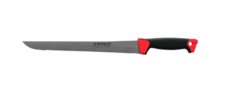 Nóż do styropianu i izolacji marki PRO o długości ostrza 345mm posiada specjalnie szlifowane zęby, które umożliwiają cięcie materiałów bez ich rozrywania i blokowania się w nich noża. Bezpieczną pracę zapewnia wyprofilowany uchwyt z dwukomponentowego tworzywa. Ostrze noża PRO wykonane zostało ze stali nierdzewnej 3CR13, dzięki czemu jest łatwe w obróbce i ostrzeniu, a także odporne na korozję.