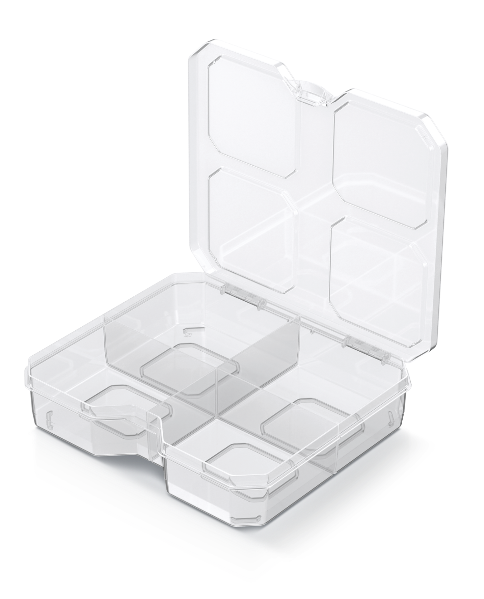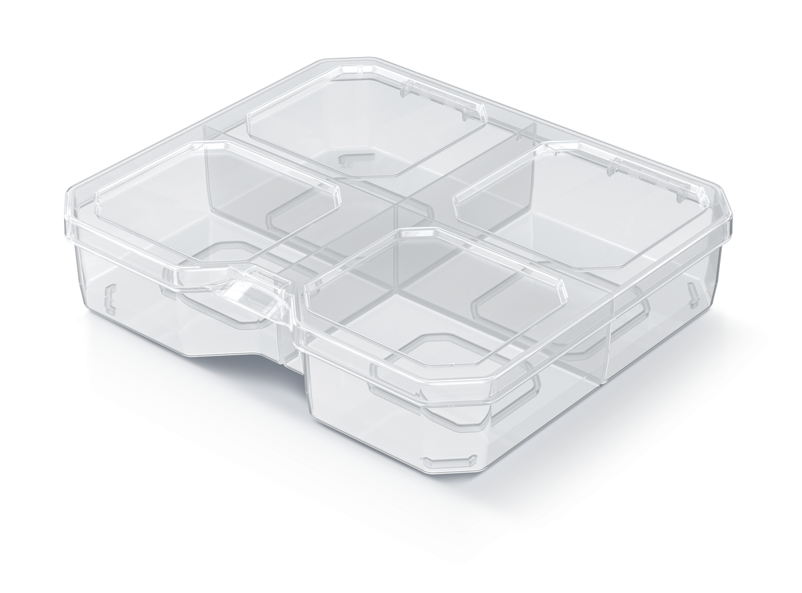 Organizer narzędziowy SQR BOX 15 Kistenberg o wysokości 35 mm i szerokości 156 mm. Organizer posiada stałe przegrody i 4 przestrzenie do przechowywania.