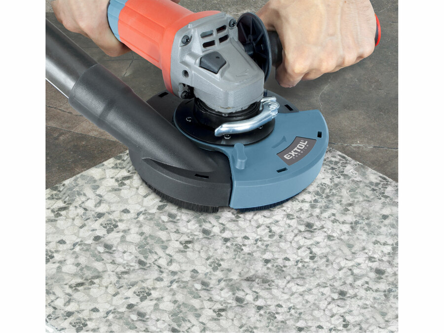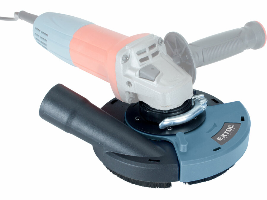 Osłona odciągowa do szlifierki kątowej Ø125mm z pierścieniem szczotkowym umożliwiająca skuteczne odsysanie pyłu dla zdrowszej pracy i lepszej widoczności powierzchni roboczej.