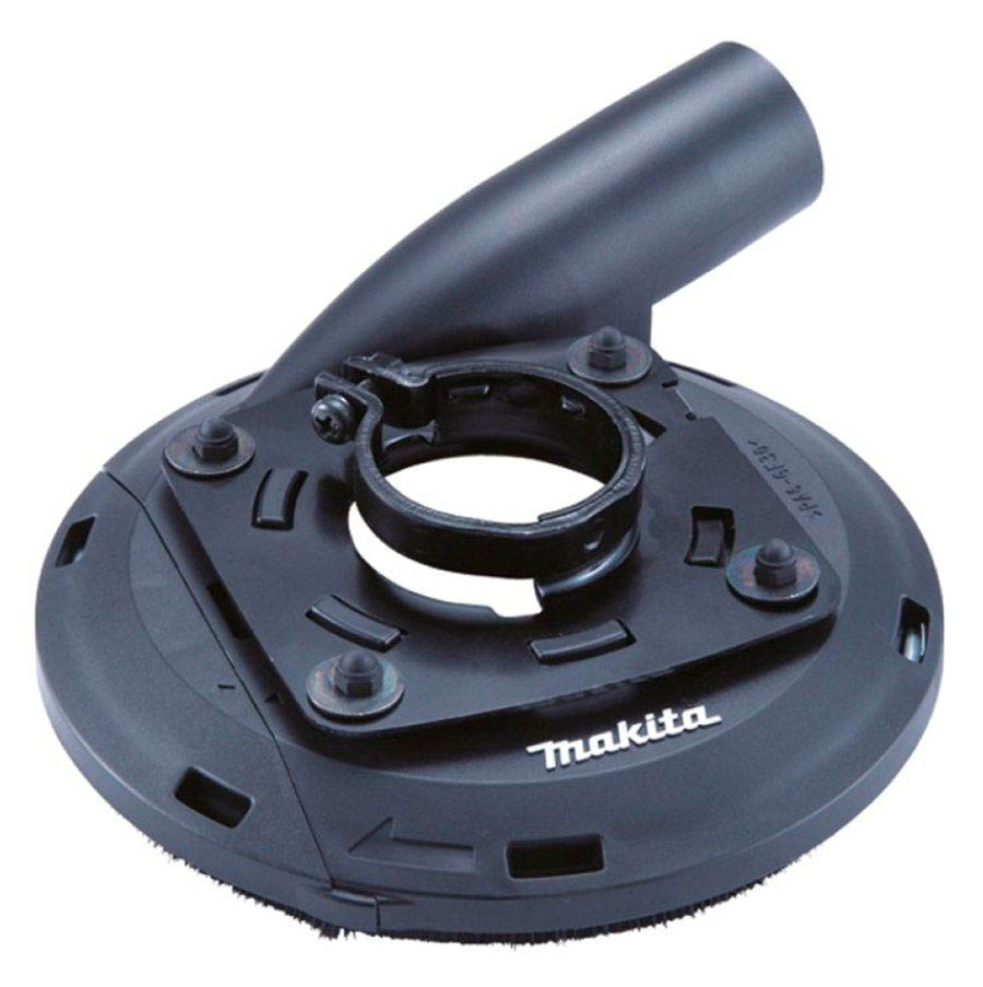 Osłona z odsysem Makita umożliwia odsysanie pyłu podczas szlifowania. Przyłączana bezpośrednio na kołnierz szlifierek kątowych Makita 115 i 125 mm. Uchylna część przednia osłony pozwala na szlifowanie do rogów i blisko krawędzi.
