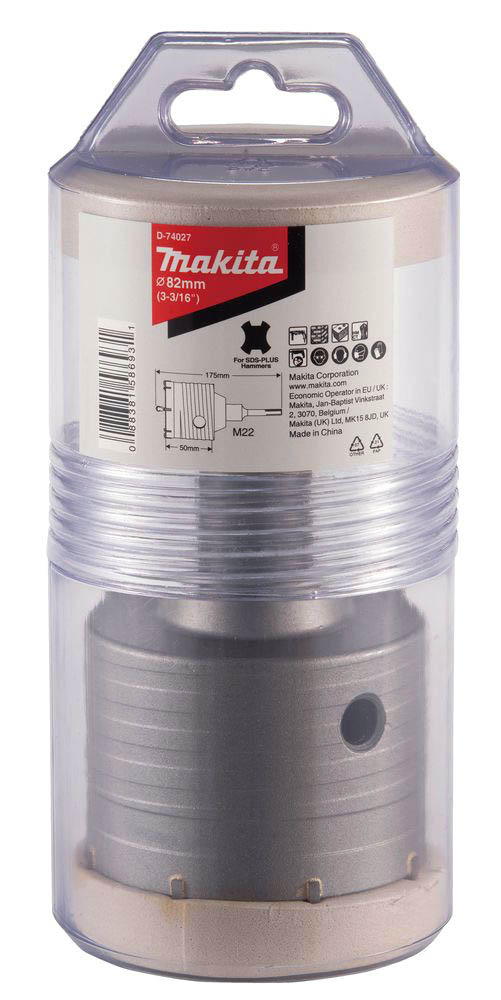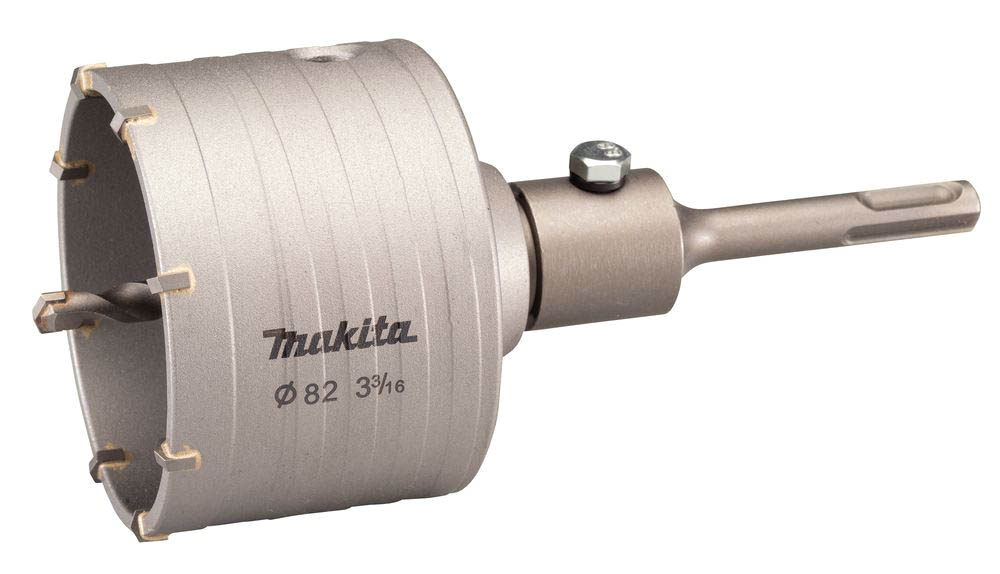 Koronka rdzeniowa Makita o średnicy 82 mm, długości całkowitej 175 mm i długości roboczej 50 mm. Koronka posiada 8 zębów z węglików spiekanych, które umożliwiają łatwe przewiercanie się przez beton czy kamień. W komplecie z koronką uchwyt wiertarski 110 mm M 22 i wiertło centrujące. Koronka rdzeniowa pozwala na wiercenie w betonie, cegle, cegle piaskowo-wapiennej, kamieniu i gazobetonie na głębokość 50 mm.