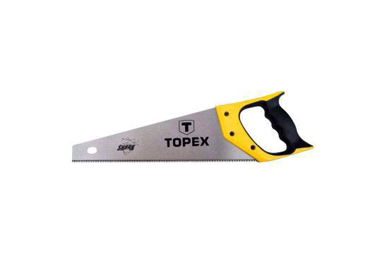 Piła płatnica Shark marki Topex o długości 450 mm wykonana została ze stali hartowanej. Piła posiada trójstronnie ostrzone i hartowane zęby, które znacznie obniżają opory cięcia i ułatwiają przecinanie drewna wzdłuż słojów. Piła umożliwia wygodną pracę, dzięki ergonomicznemu dwumateriałowemu uchwytowi z powłoką antypoślizgową.