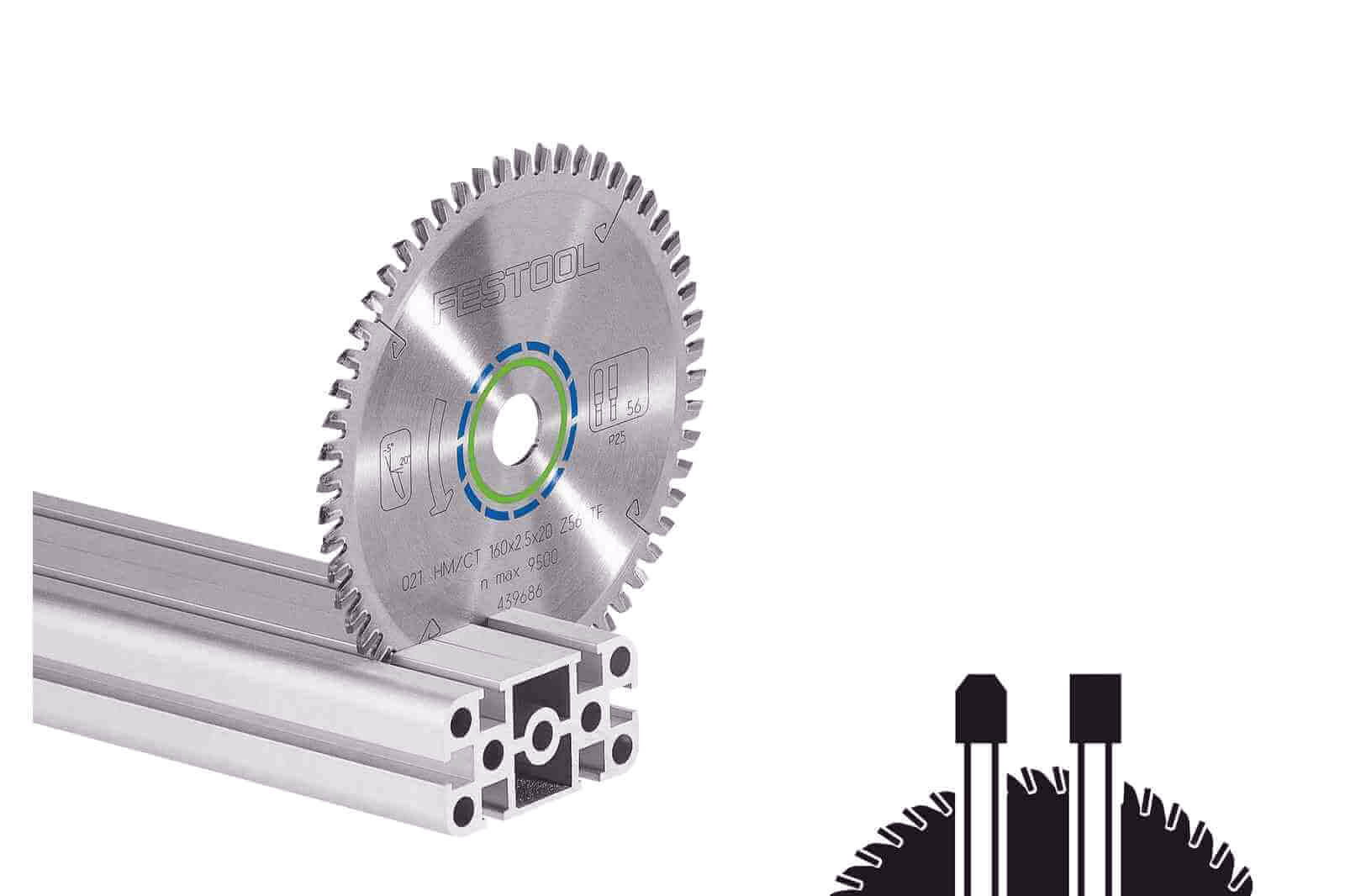 Tarcza pilarska Festool o średnicy 160 mm z zębami wykonanymi z węglika spiekanego. Kąt natarcia oraz kształt zębów został zoptymalizowany pod cięcie aluminium i tworzyw sztucznych. Tarcza Festool sprawdzi się przy cięciu płyt i profili aluminiowych, pleksiglasu, tworzyw sztucznych wzmacnianych włóknem szklanym, metali nieżelaznych, aluminiowych płyt wielowarstwowych i wielu innych. Dodatkowo kod barwny pił tarczowych Festool ułatwia wybór odpowiedniej tarczy.