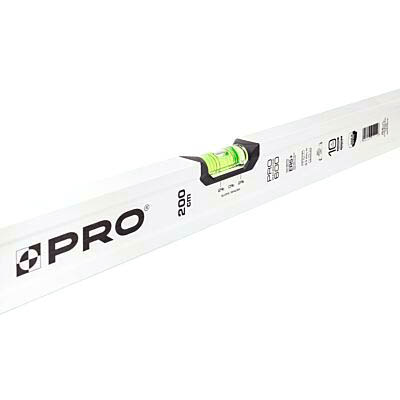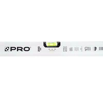 Poziomnica PRO600 o długości 200 cm wykonana została z jednokomorowego profilu aluminiowego o wymiarach 49 x 22 mm. Profil poziomnicy PRO jest chroniony końcówkami z elastomeru, zaprojektowanymi tak, aby pochłaniać siłę uderzenia w przypadku pionowego upadku poziomnicy. Poziomnica PRO600 posiada przetłoczenia i żebrowania zwiększające sztywność profilu, co zapewnia dodatkową ochronę przed uszkodzeniami mechanicznymi. Narzędzie nie posiada ostrych krawędzi, a jego łagodne kształty umożliwiają sprawne czyszczenie z wszelkich zabrudzeń.