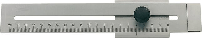 Z hartowanymi krawędziami traserskimi, wkrętem mocującym i wykonaną laserem podziałką w milimetrach. Skala wykończona matowo. Wykonanie płaskie.
