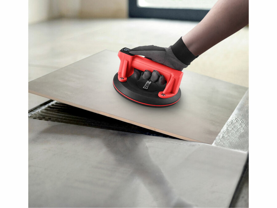 Jej główną zaletą jest możliwość utrzymania stabilnego podciśnienia bez konieczności ciągłej kontroli ręcznej. Stanowi ona bardziej zaawansowaną alternatywę dla tradycyjnych przyssawek ręcznych. Podczas gdy klasyczne przyssawki wymagają dużej siły fizycznej i częstej kontroli, modele automatyczne oferują większy komfort, stabilność i bezpieczeństwo. Przyssawka jest wyposażona w inteligentny zawór, który wykrywa spadek podciśnienia i automatycznie go koryguje, zapewniając pewny chwyt przedmiotów nawet podczas długotrwałej pracy. Automatyczna kontrola podciśnienia minimalizuje również ryzyko poluzowania się ładunku, co jest kluczowe podczas przenoszenia delikatnych lub ciężkich przedmiotów. Przyssawka może być stosowana na różnych materiałach, w tym szkle, metalu, plastiku lub ceramice, o ile mają one gładką i nieporowatą powierzchnię. Przyssawka jest aktywowana poprzez długie naciśnięcie przycisku i zwalniana poprzez dwukrotne szybkie naciśnięcie przycisku lub ręcznie za pomocą gumowego uchwytu na przyssawce. Gumowa powierzchnia przyssawki jest zabezpieczona przed uszkodzeniem plastikową osłoną, a cała przyssawka znajduje się w obudowie. Ładowanie odbywa się za pomocą standardowego kabla USB ze złączem USB-C, podłączonego do dowolnej ładowarki USB.