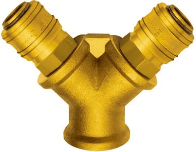 Z mosiądzu, z gwintem wewnętrznym (GW), z dwoma rozgałęzieniami z szybkozłączkami NW 7,2.